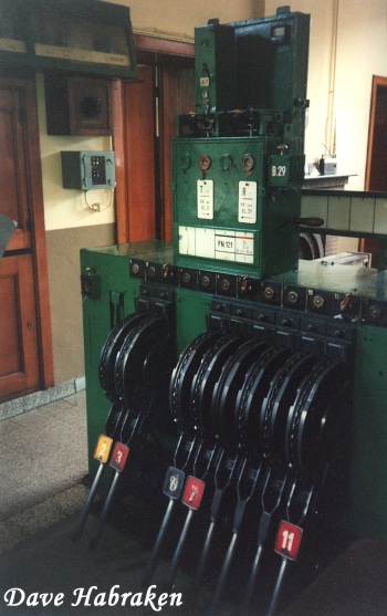 In hetzelfde gebouw bevond zich nog een rariteit: het bedieningstoestel voor de slagbomen van de overweg vlak naast dit seinhuis. Ook deze foto werd gemaakt op 15 september 1992 hoewel de sfeer er eentje is van tientallen jaren vroeger.