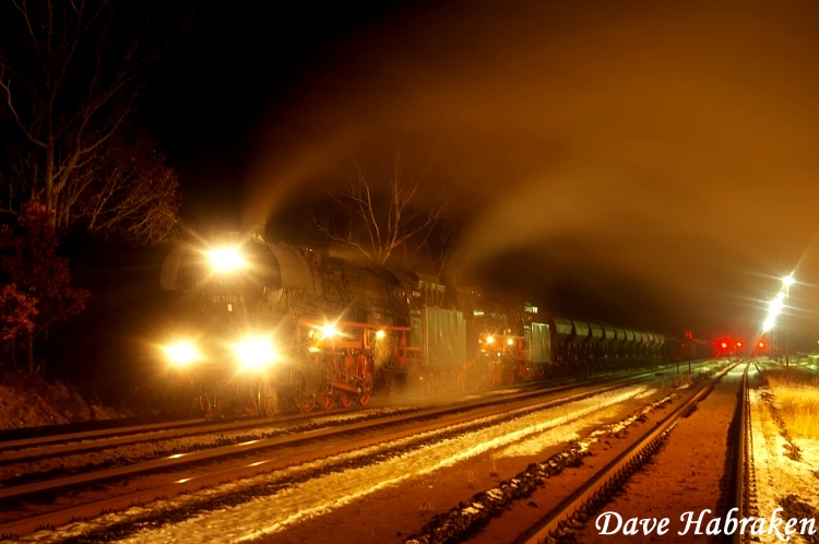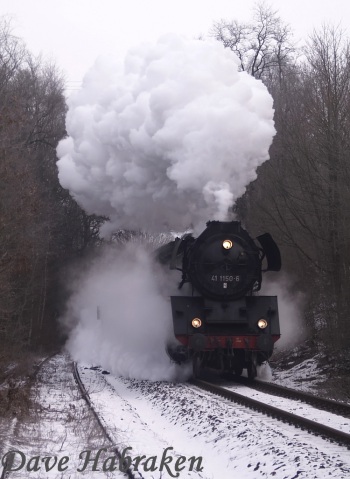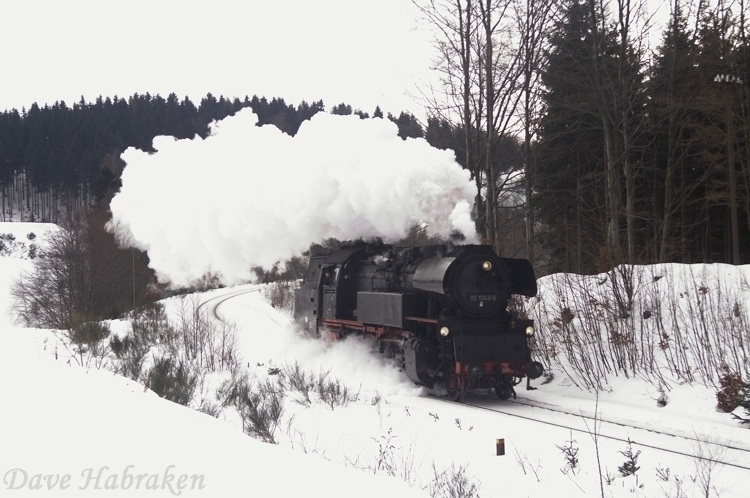Voor uw webmaster was het evenement "Plandampf im Werratal" zijn kennismaking met dit soort evenementen. Voor dit evenement werden een aantal spoorlijnen in het Werra-tal bereden. Van de Werra hebt u misschien nog nooit gehoord maar Meiningen, een van de stadjes aan dit kleine riviertje, doet wellicht wel een serieuze overwegbel rinkelen. We bevinden ons dus in Thüringen waar het altijd al wel knap is met de bekende beboste heuvels, maar waar we nu nog extra verwend werden en een laag sneeuw, net genoeg om bijna overal een winters kader te bieden aan het te fotograferen stoomgeweld.